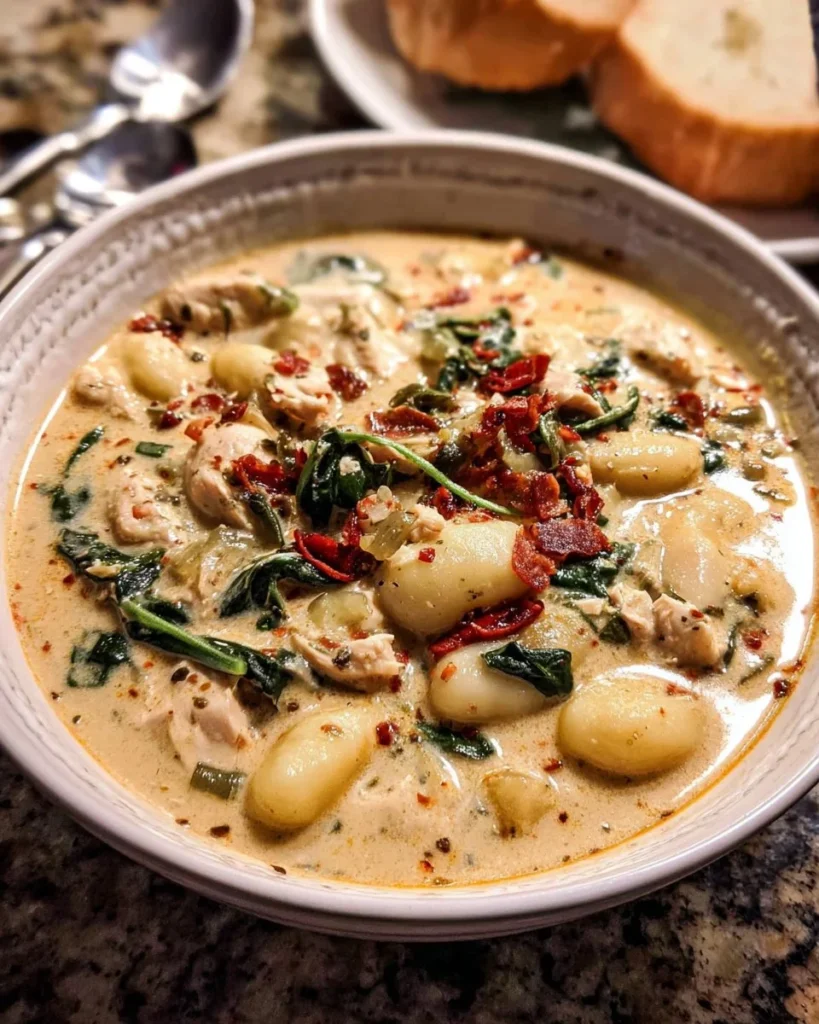 This Creamy Spicy Chicken Gnocchi Soup is rich, creamy, and full of flavor. Perfect for chilly evenings, it combines tender chicken, silky cream, and pillowy gnocchi in a delightful broth. Customize it with your favorite veggies!Ingredients