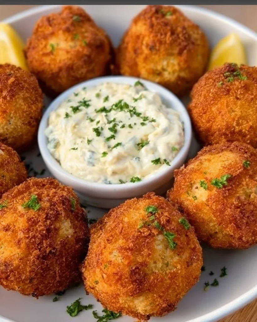 Delicious homemade crab cake balls, crispy on the outside and tender on the inside, perfect for a party or a weeknight dinner.