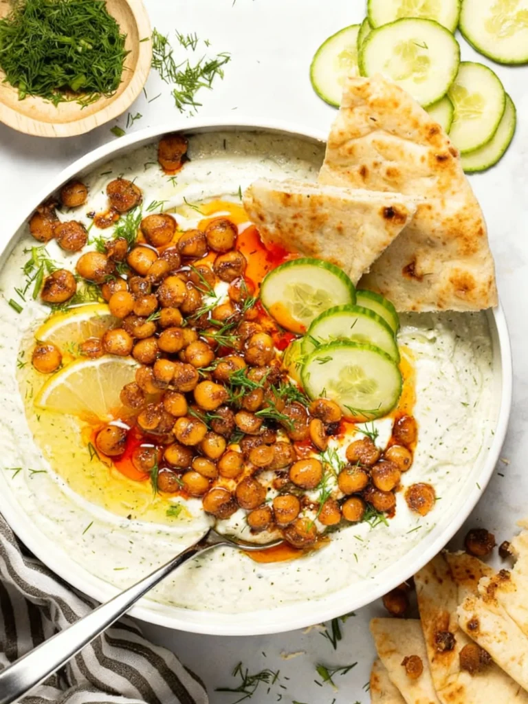 Creamy, tangy whipped feta dip with spiced chickpeas, perfect for dipping pita or veggies. A crowd-pleasing appetizer that’s easy to make and full of flavor.