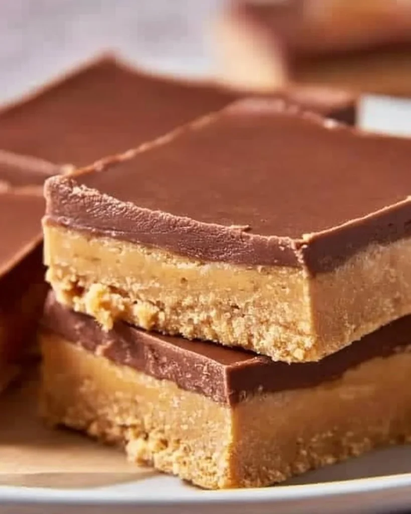 Layer the Chocolate: Pour the melted chocolate over the pressed peanut butter layer, spreading it evenly with a spatula. Give it a gentle tap on the counter to level it out.