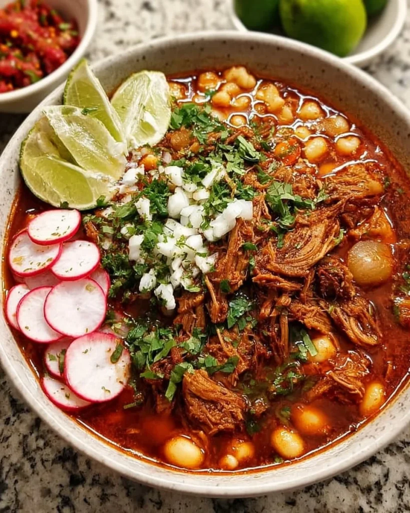 Experience the warmth of home cooking with this comforting Red Pozole with Shredded Pork, a traditional Mexican stew filled with tender pork, hominy, and rich spices.Ingredients